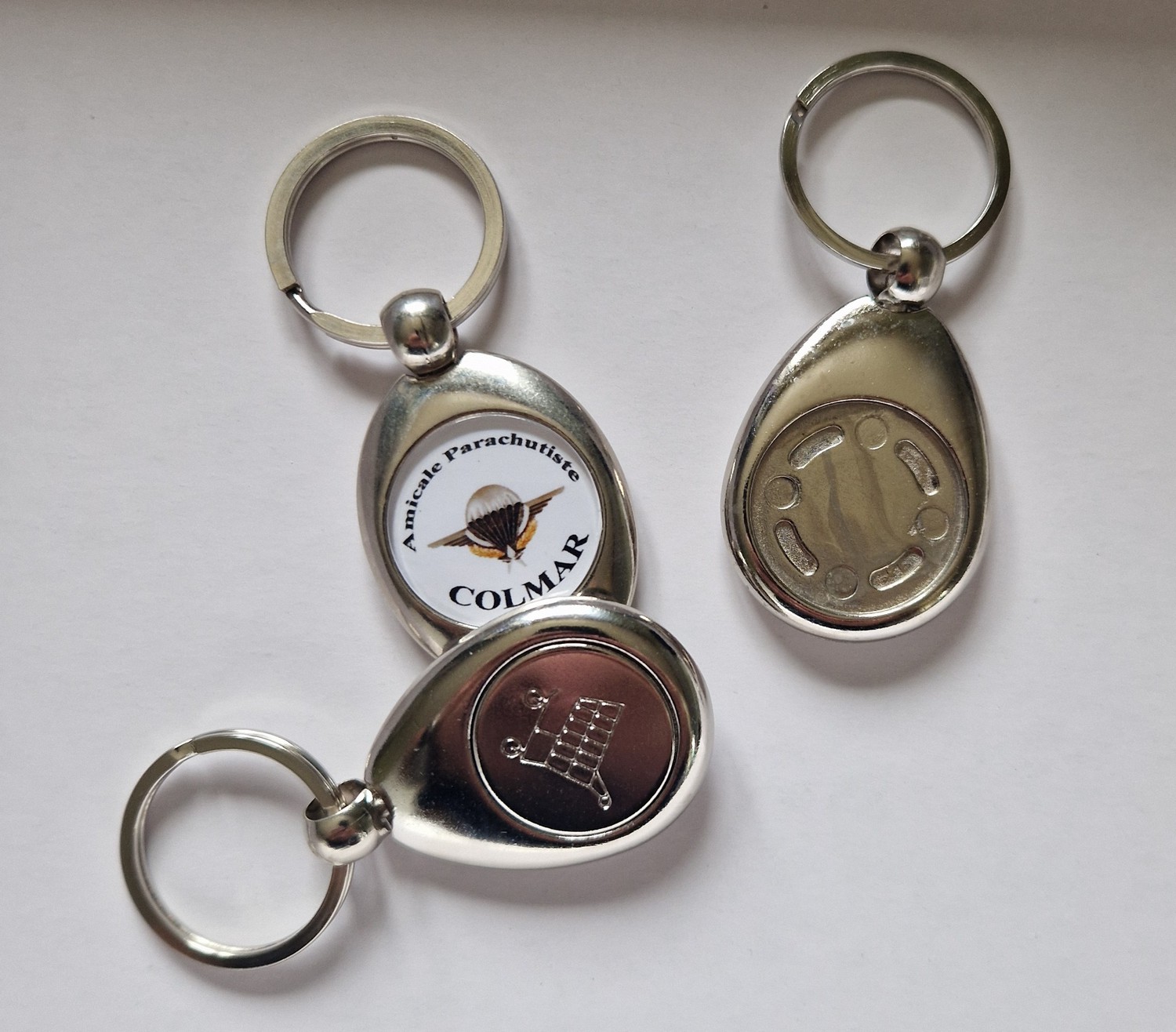 Joueur Inscrit Pays: | Hello 35gr d'un coté le blason de l'autre un jeton de caddie Forme : goutte en métal chromé brillant Dimensions de la goutte : 4 cm × 3,2 cm × 5 mm Hauteur totale (anneau inclus) : 7 cm Jeton : diamètre 23 mm, poids 3 g (format standard chariot) Poids total : 35 g ![]() | |
